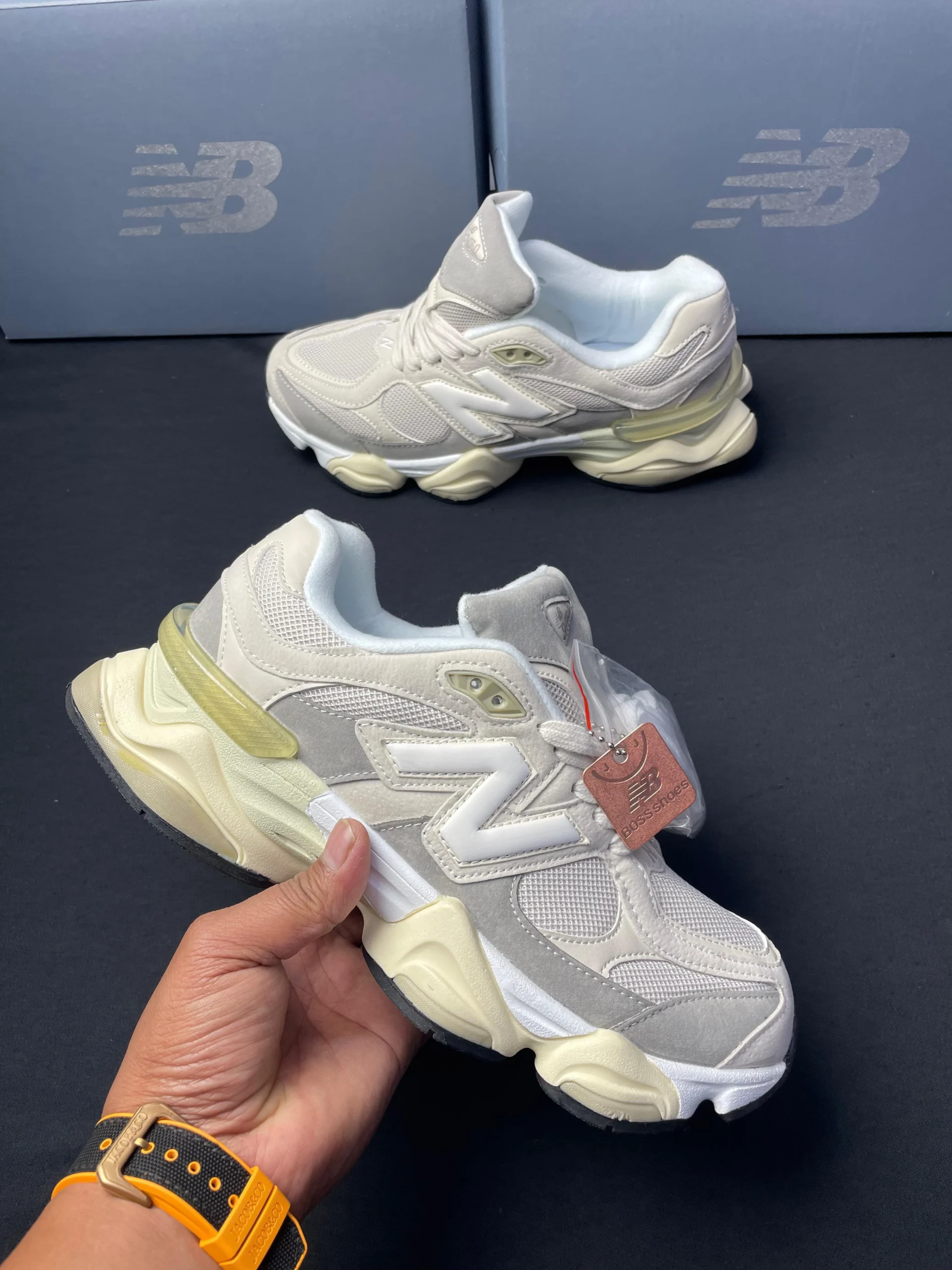 Introducing the New Balance 9060 Cream Beige First Copy Shoes — a silhouette that blends retro running aesthetics with modern streetwear sensibility. The warm cream and beige tones give this pair a premium, understated look that effortlessly complements any outfit.