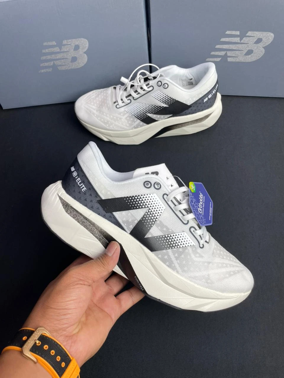 The New Balance SC Elite V4 White Black First Copy Shoes are built for those who demand performance-level comfort combined with a sleek, modern design. Inspired by elite-level running footwear, this silhouette delivers a clean white base with sharp black detailing that creates a bold yet minimal aesthetic. Whether you’re stepping out casually or looking for an athletic edge in your daily wear, this pair stands out with its futuristic structure and lightweight feel.
