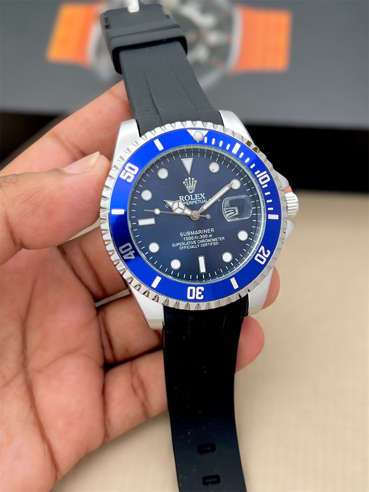 Overall, this timepiece represents a strong combination of classic dive-watch inspiration and modern everyday usability. Its bold dial, structured case, and comfortable strap come together to create a watch that reflects confidence, style, and reliability. The Rolex Men’s Blue Dial Submariner First Copy Watch is an ideal choice for men seeking a distinctive wristwatch that makes a lasting impression.